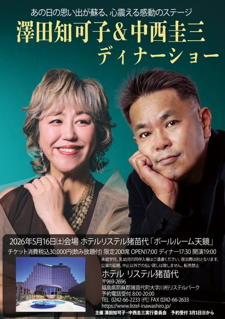 ホテルリステル猪苗代 ディナーショー 澤田知可子&中西圭三